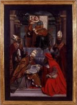 Bambino e i quattro Dottori della Chiesa, olio su tela.